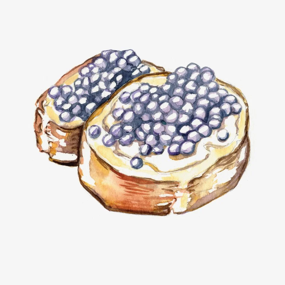 Caviar Watercolor on Paper 5" x 7" Price on request