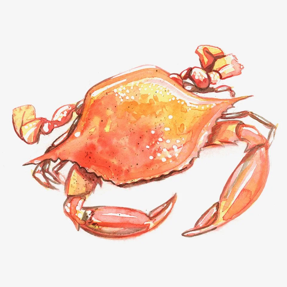 Crab Watercolor on Paper 5" x 7" price on request