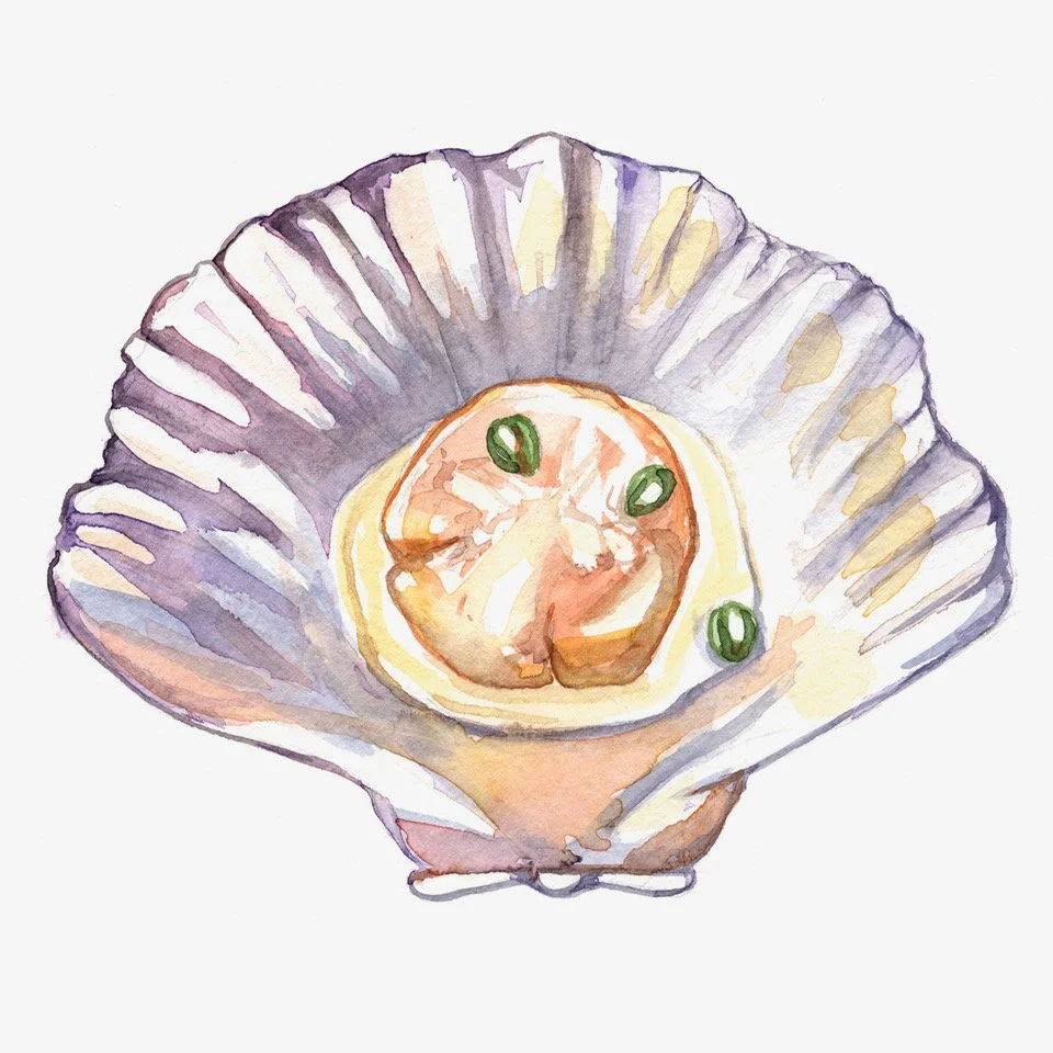 Scallop Watercolor on Paper 5" x 7" price on request