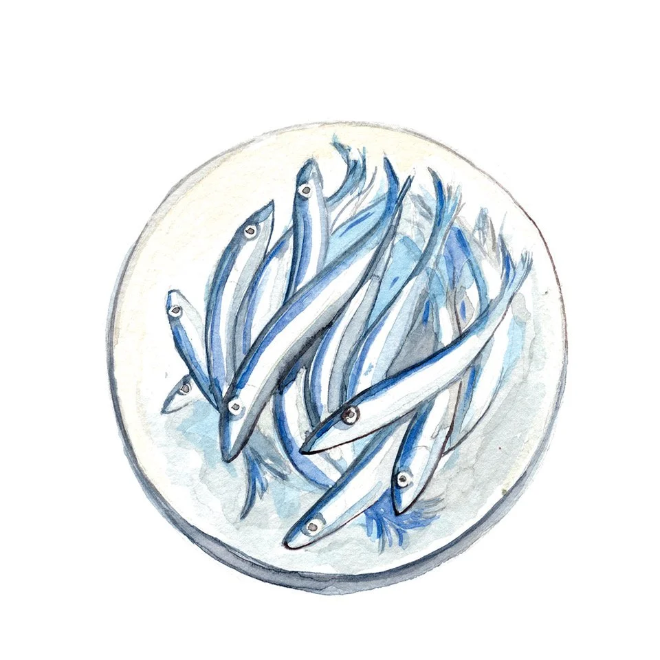 Anchovies Watercolor on Paper 5" x 7" price on request