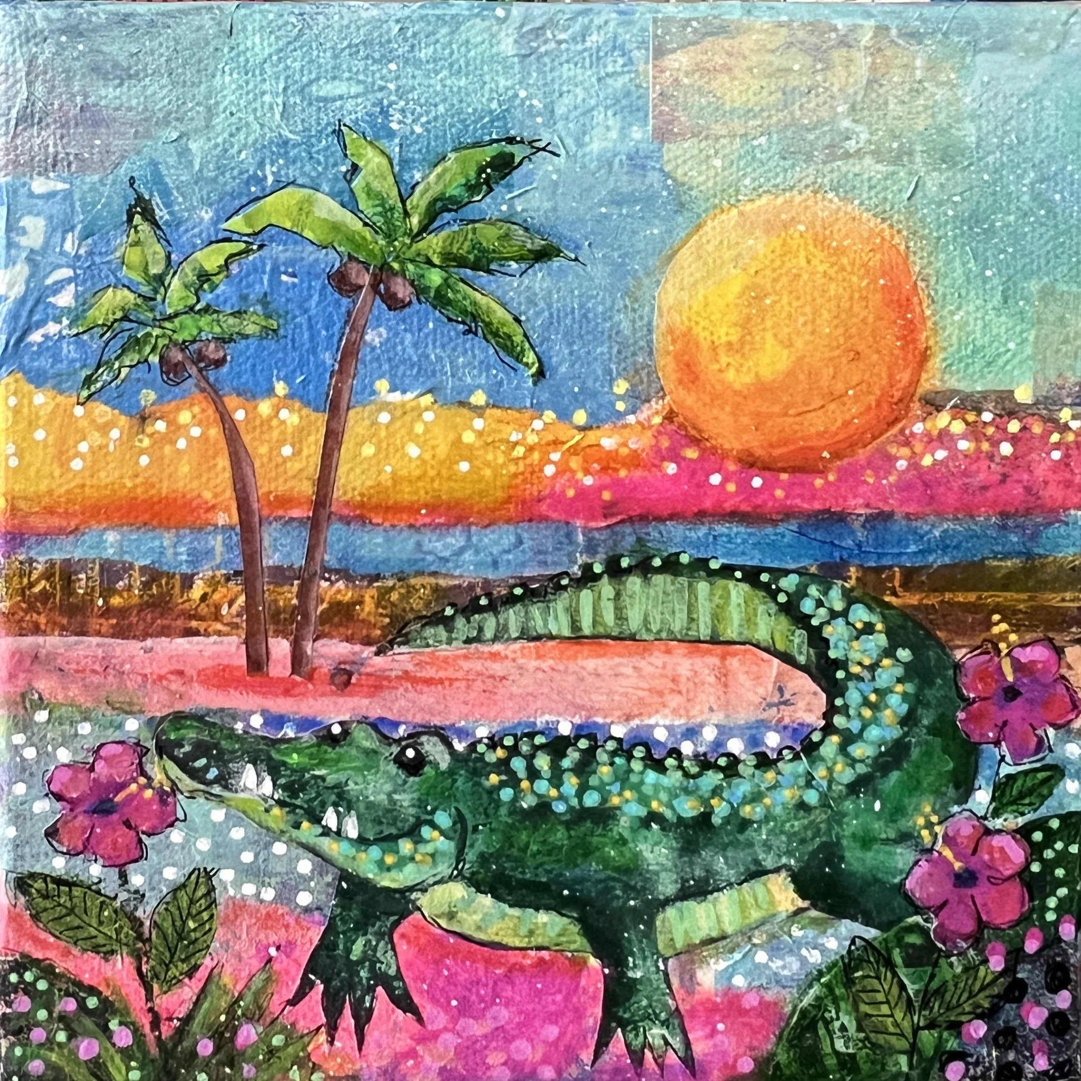 Beach Buddy mixed media and collage 6" x 6" 2024 price on request