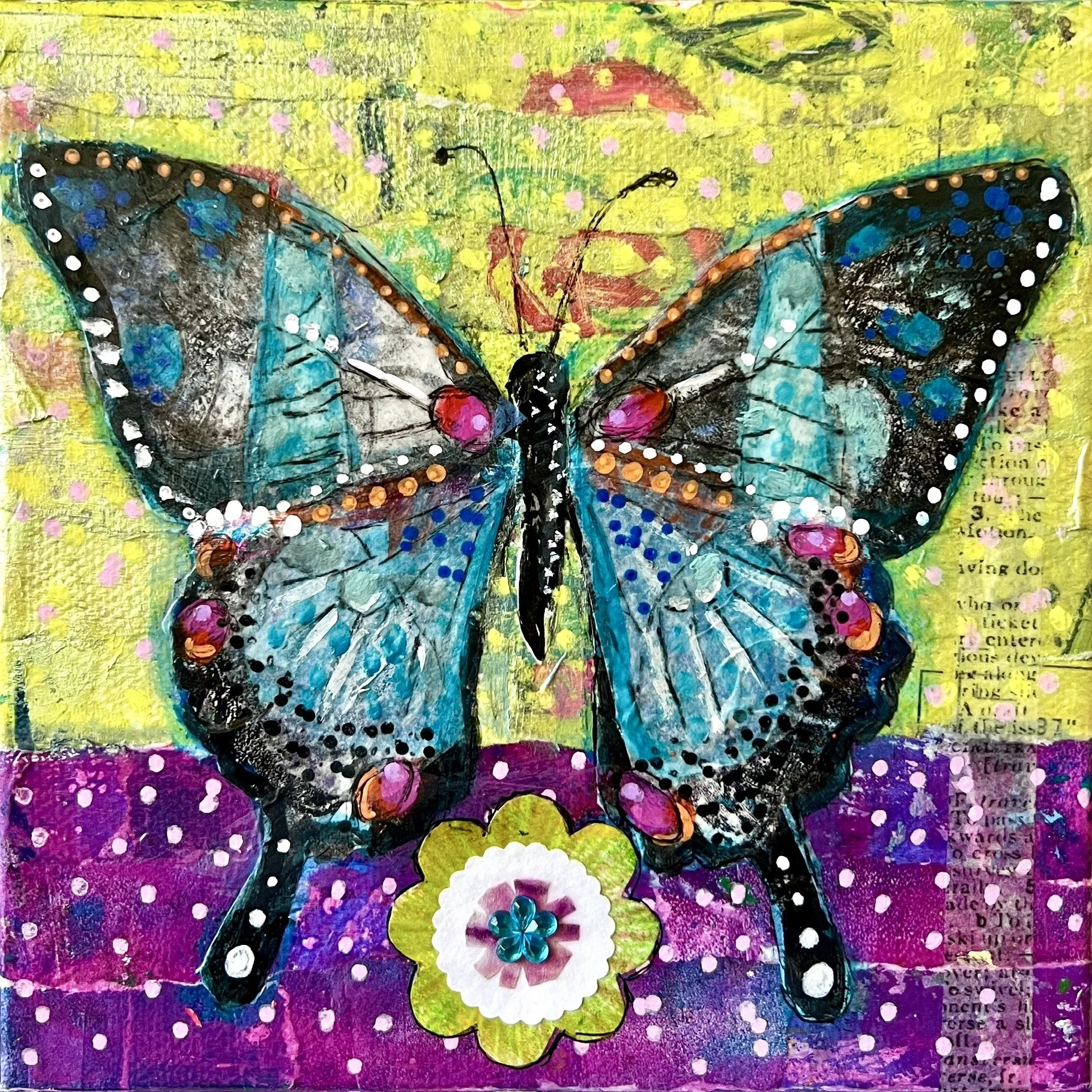 Butterfly Brilliance mixed media and collage 6" x 6" 2024 price on request