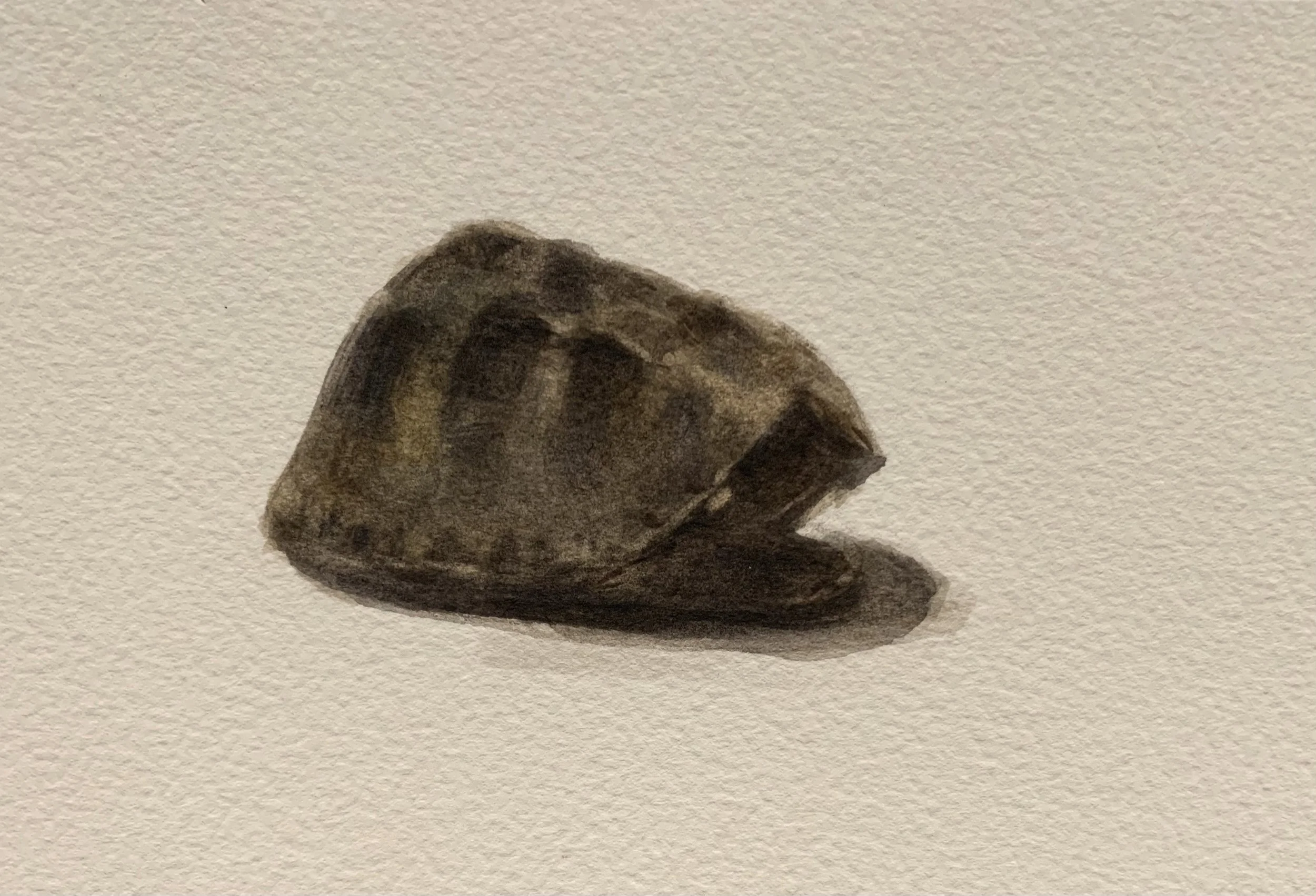 Apple Snail watercolor on paper 4" x 6" 2024 price on request