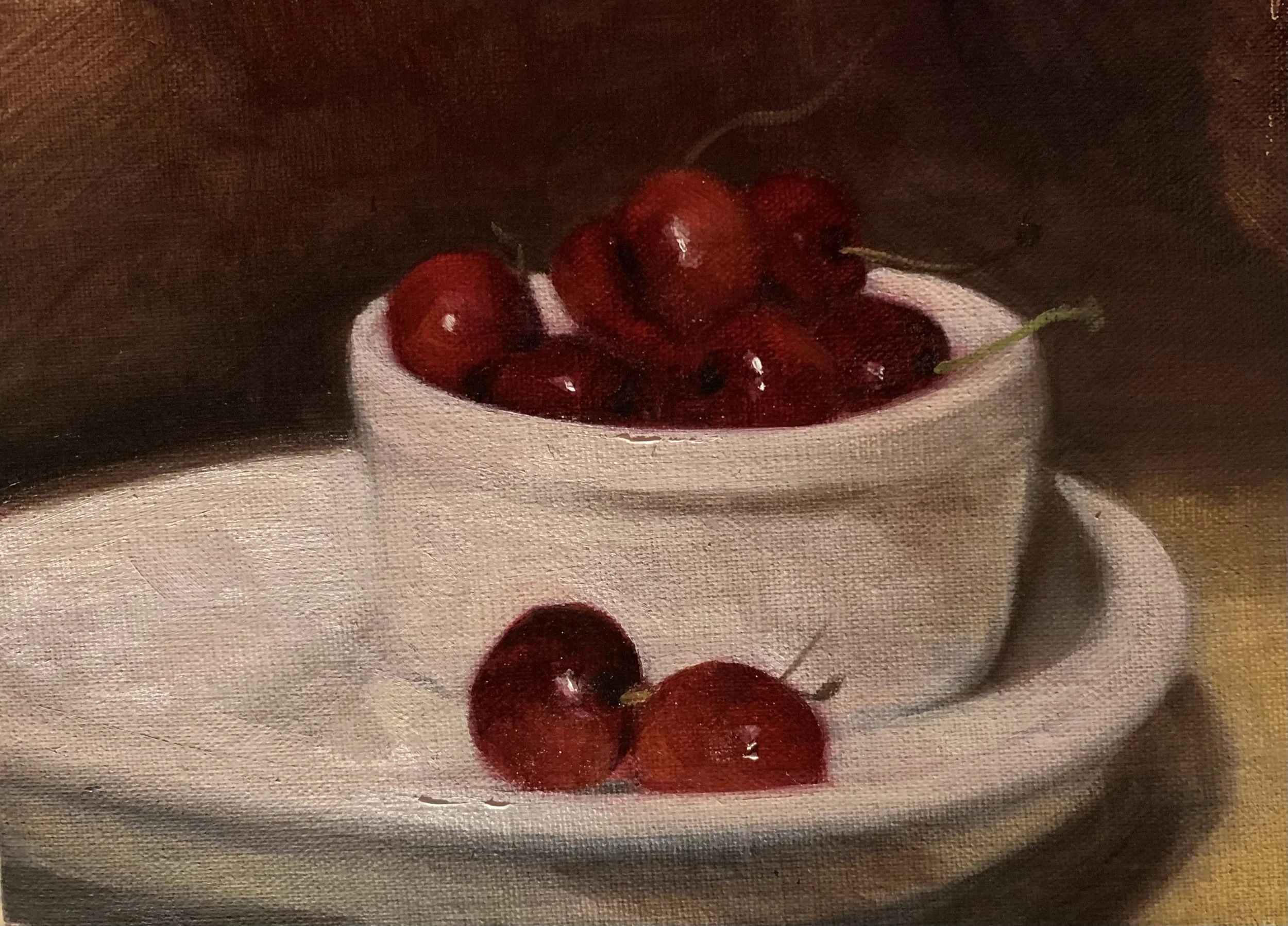 Bowl of Cherries oil on linen panel 5" x 7" 2024 price on request